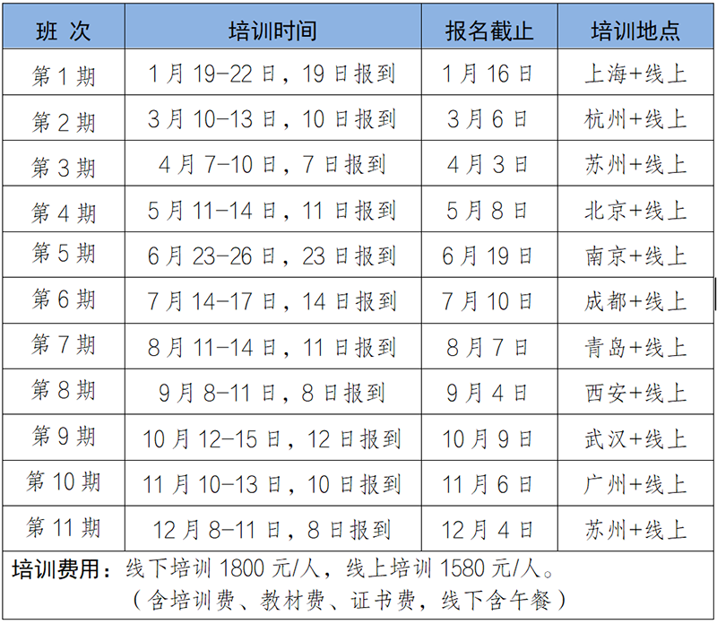 2026年培训课程基本均以线下+线上两种方式同时开展,学员可根据自身需求选择到培训现场或通过线上同步直播的方式进行学习。